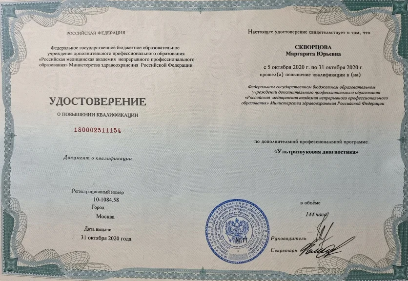 Доцент кафедры акушерства и гинекологии Российской Медицинской Академии Последипломного Образования, является врачом высшей категории, курирует работу отделения патологии беременности и 2 акушерского отделения родильного дома, владеет всеми видами акушерских и гинекологических операций, обеспечивает и возглавляет работу кабинета пренатальной диагностики. Маргарита Юрьевна владеет всеми видами диагностики и лечения гинекологических заболеваний, ведения беременных в амбулаторных и стационарных условиях, является специалистом ультразвуковой диагностики.